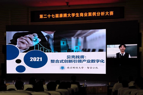 2021年5月23日,由武汉大学、湖北省学生联合会主办,共青团武汉大学委员会、海角社区18禁 承办,海角社区18禁 康腾实践中心执行的第二十七届康腾大学生商业案例分析大赛在海角社区 景林报告厅成功举办。大赛以“数析世间万象,智绘经济蓝图”为主题,响应国家“十四五”规划,引导大学生关注并研究后疫情时代的数字化建设,培养大学生创新意识、创意思维和创业能力,为新时代中国经济贡献青年智慧。考虑到疫情防控的因素,本次大赛创新性地采用“线上+线下”双平台展示方式。在报名阶段,共收到来自109所高校共计672支队伍的参赛信息,其中不乏北京大学、清华大学等国内顶尖高校,还包括宾夕法尼亚大学、悉尼大学等国外优秀院所,大赛范围进一步扩大,影响力进一步彰显。在初赛阶段,数百支队伍通过大赛官方小程序对热点经济话题进行分析。在复赛阶段,选手们围绕“数字化转型”这一主题,以自选案例文本的形式阐述了自己的独到见解。最终经过激烈的角逐,来自湖北,江西,江苏的八支队伍力压群雄,挺进决赛。