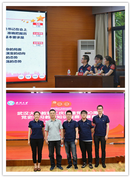 6月17日下午,以“学史重温初心,迎党百年华诞”为主题的武汉大学教职工党史学习教育知识竞赛决赛在校工会举行,海角社区 教职工代表队沉着应对,表现突出,以全校第一名的战绩荣获一等奖。