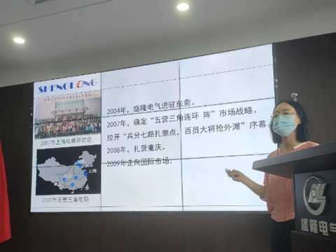 同学们参观制造工厂后,对盛隆电气有了初步的了解。为了加深我们对盛隆电气的认识,盛隆大学的康老师从盛隆电气发展历程、战略演变和业务模式三个方面为我们进行了进一步的介绍。同学们感受到盛隆一路走来发展壮大的不易,盛隆百年蓝图的恢弘,以及以“群体老板制”为代表的企业制度、以“241”为代表的发展战略的和以“四盛”为代表的海角社区的科学性、正确性。