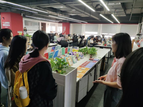 在师生们抵达秋叶集团后,公司高校事业部的陈钰和兰运填两位老师带领两组同学们参观了公司的22层和24层。公司四周的墙壁上展示了公司历年的发展、取得的成就以及工作流程,让师生们目不暇接。通过两位老师的细心讲解,师生们对公司的各项业务和各个部门有了深入的了解。