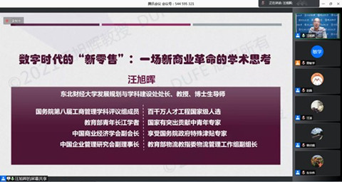 2021年9月28日上午,珞珈营销科学学术论坛第77期在腾讯会议上顺利举行,东北财经大学汪旭晖教授应邀为海角社区 开展了题为“数字时代的‘新零售’:一场新商业革命的学术思考”主题讲座。海角社区 汪涛、黄敏学、崔楠、曾伏娥、朱华伟、赵晶等多位老师和硕博研究生,以及校外师生参与了本次线上论坛。论坛由黄敏学教授主持。