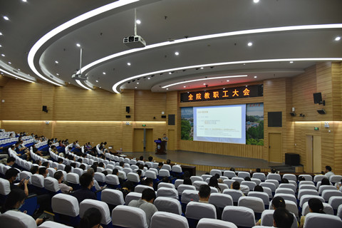 9月30日下午,学院2021年中期全体教职工大会在景林报告厅举行。会议由院党委书记杜晓成主持。全体院领导及教职工参会。