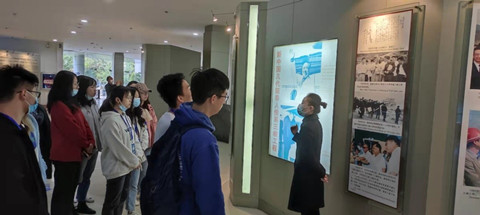 (图中为展览馆工作人员为同学们讲解三峡工程的历史)