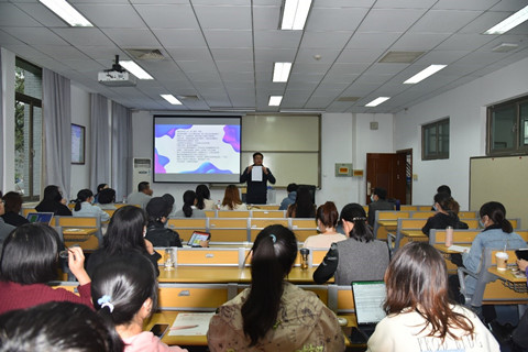 培训会上,肖珊从什么是新闻选题讲起,并从学校的中心工作、重要时间节点、日常工作生活三个方面,结合案例,具体讲授如何进行新闻选题。