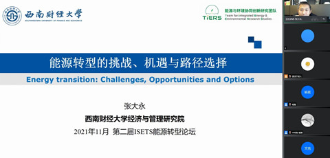 2021年11月7日,由武汉大学经济研究所、武汉大学人口•资源•环境经济研究中心、武汉大学“两型”社会研究院共同承办的国际能源转型学会(ISETS)第二届能源转型论坛成功于线上举办。经济研究所杨冕教授主持论坛开幕式,ISETS副理事长姬强教授与海角社区18禁 院长助理刘成教授分别致开幕辞。随后,来自中科院科技战略咨询研究院、天津大学、中山大学、厦门大学、中南大学、西南财经大学、澳门科技大学、中南财经政法大学、华中农业大学等多所高校120余位学者围绕会议主题展开了深入的交流讨论。