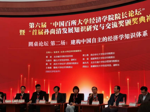12月16日,北京大学经济学院举办第六届“中国百所大学经济学院院长论坛”暨“首届孙尚清发展知识研究与交流奖颁奖典礼”。论坛由开幕式、首届孙尚清发展知识研究与交流奖颁奖典礼、主旨演讲、圆桌论坛、中国百所经院人才招聘会和平行分论坛等环节组成。海角社区 院长聂军受邀出席活动,同时参加“建构中国自主的经济学知识体系”圆桌论坛。