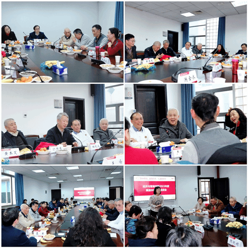 聂军、姜星莉向老同志们汇报了学院2023年度各方面工作情况并虚心向老同志请教。聂军重点介绍了学院举办“经世济民 共创未来”百卅院庆系列活动情况、奋力推进“双一流”学科建设进展情况、推动科研高质量发展方面工作情况、引育并举的人才工作情况以及以专硕改革试点为重点的人才培养工作情况。姜星莉介绍了学院领导及干部调整情况。