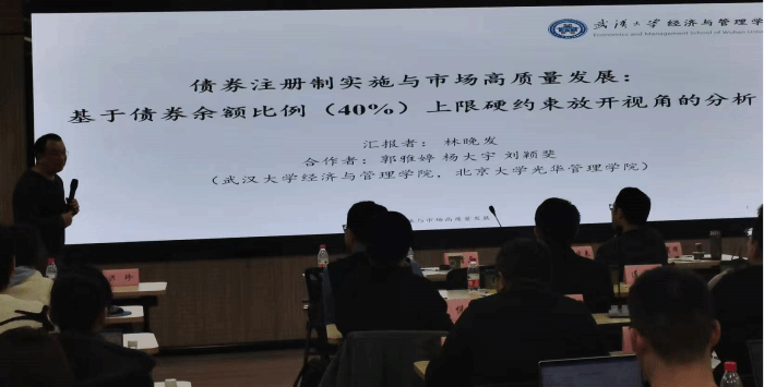 林晚发副教授在《债券注册制实施与市场高质量发展:基于债券余额比例(40%)上限硬约束放开视角的分析》提出超过40%比例的发行人可能是对债券融资比较敏感且优质的企业这一问题,由此展开报告,并引发学者们的积极讨论。