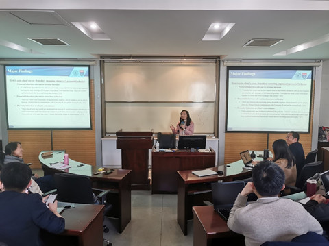 2021年12月7日上午,由工商管理系承办的“柯力工商管理学术沙龙”第80期在学院B224教室如期举行,西安交通大学管理学院组织管理系主任李福荔教授为师生们带来了以“组织行为前沿研究:新方法与新情境”为主题的讲座,分享了其最新的两个研究。学院30余位师生参加了交流讨论。
