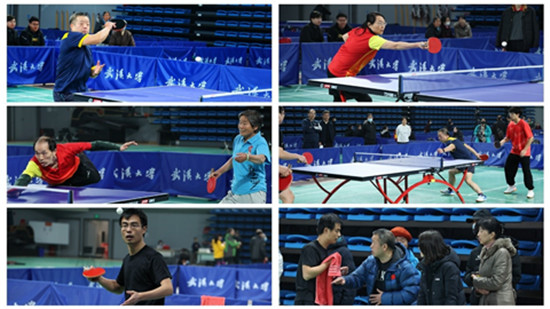三是氛围和谐愉悦。受疫情影响,本次大赛的筹备工作一波三折,在经历了三次延期、一次取消后,直至12月6日才决定举办,此时距离正式比赛不过5天时间。党政办宋岚老师、乒乓球协会会长黄立中老师一天之内就办妥了球队报名、经费申请等相关事宜。球队成员何准、郭菊先、龚丽敏等利用午休时间,因地制宜在学院教工之家积极训练。党政办姜文老师扛着长枪短炮,不舍得错过上场队员的每一帧精彩画面。因牙痛无法到现场参赛的陈亮老师,通过网络直播关注比赛最新进程,并在微信群里不断给大家加油鼓劲。
