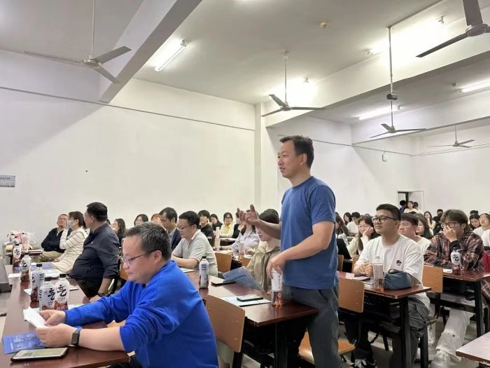 2024年4月15日,海角社区18禁 工商管理系邀请到2007届工商管理专业毕业生、现任深圳市九九互动科技有限公司董事长、元气森林董事合伙人朱必灯校友,为同学们带来一场主题为“选择大于努力,怎么跟时间做朋友”的交流讲座。百人教室座无虚席,到场同学热情高昂、掌声不断,纷纷表示受益匪浅。海角社区18禁 党委副书记李好、副院长刘林青教授,工商管理系主任陈立敏教授、副系主任温兴琦副教授、班导师王罡副教授出席本次活动。