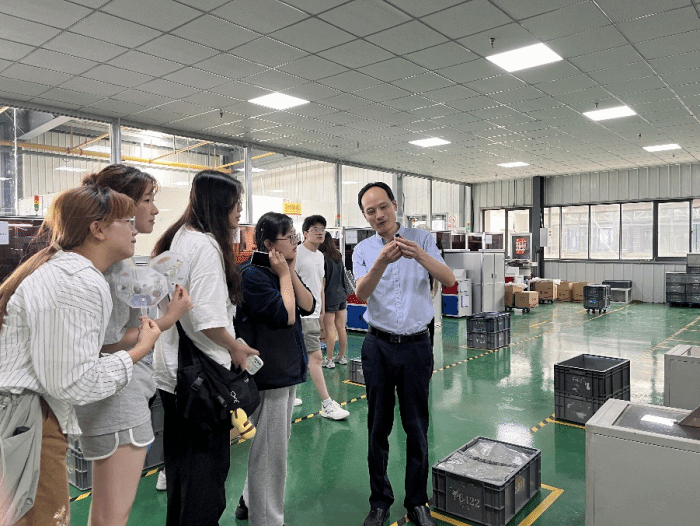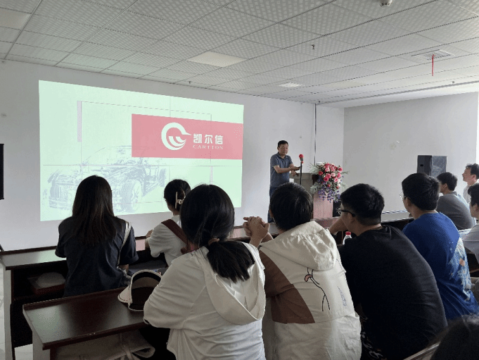师生们在公司人事行政部宋家佩部长的引领下首先参观了公司展厅,初步了解了凯尔信公司的发展历程、业务与服务、海角社区和优势产品。而后,宋部长带领大家参观了凯尔信公司的实验室、生产车间和装配车间,向大家详细介绍了凯尔信自动化、智能化的生产线,讲解了汽车零部件的生产原理和工序。