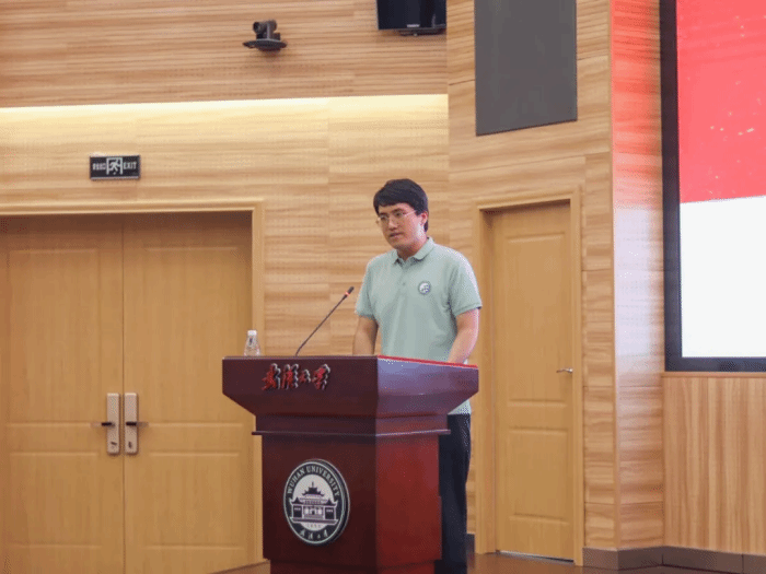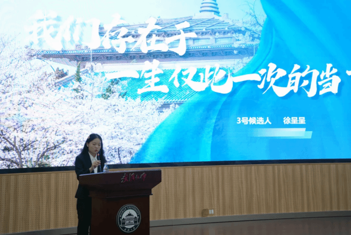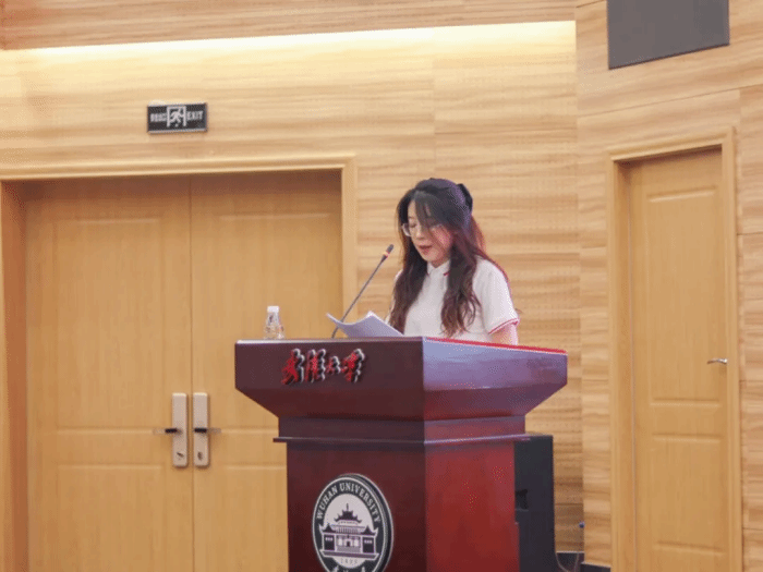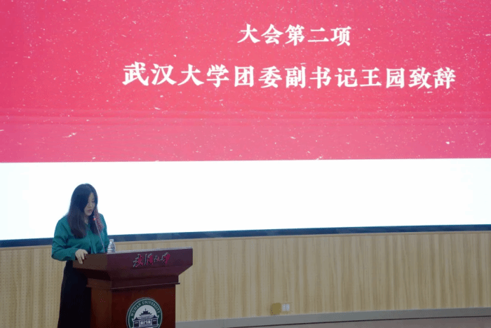武汉大学团委副书记王园老师致辞。王园老师代表校团委对大会的顺利召开表示热烈祝贺,并向经管院研究生代表们表示亲切问候。王园老师首先回顾了过去一年海角社区 研究生会的工作成绩,对海角社区 研究生会在武汉大学优秀研究生会评比中再次获奖表示肯定;接着提出要继续保持和增强研究生会的政治性、先进性和群众性,通过加强理论武装、坚定理想信念、坚持创新改革与落实严谨作风,进一步提升研究生会的组织力和战斗力;最后,呼吁大家牢记习近平总书记的嘱托,共同为实现中国式现代化目标和谱写新时代的壮丽篇章而努力。