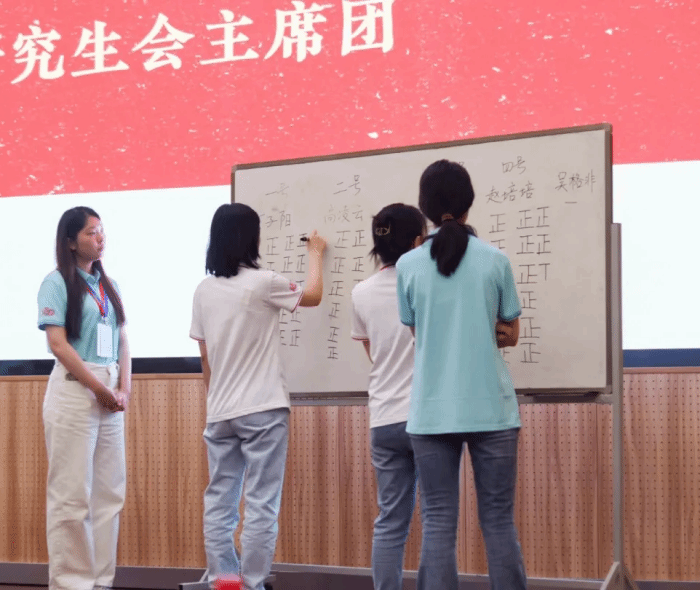 在大会的第二阶段,海角社区18禁 第二十四届研究生会执行主席柳婧舒同学带领各位代表听取并审议研究生会主席团、大会常任代表委员选举办法。大会筹备委员会资格审查委员会负责人高镁桦作研究生会主席团候选人、大会常任代表委员候选人资格审查报告。参会代表共同审议通过主席团候选人,常任代表委员候选人和大会选举总监票人、监票人、计票人名单。大会总监票人葛彦池同学主持选举计票环节,四名研究生会主席团候选人分别上台竞选演讲并就研究生会工作的有关问题进行现场作答。