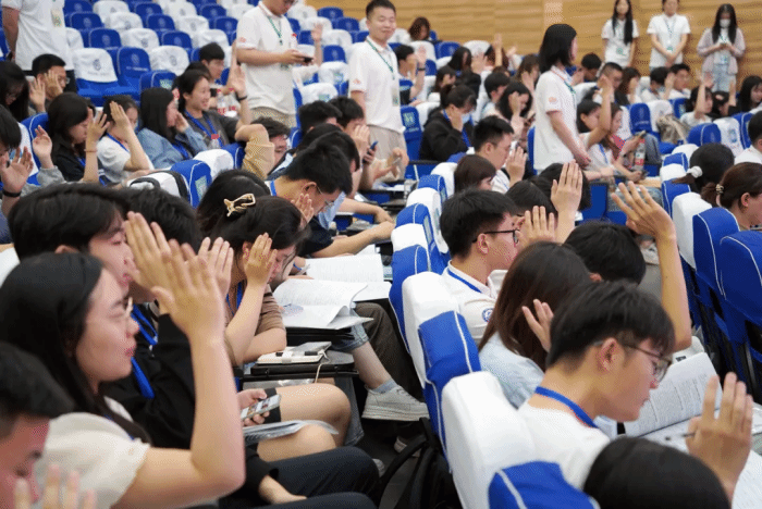 海角社区18禁 第二十四届研究生会执行主席柳婧舒同学带领各位代表听取并审议《海角社区18禁 第二十四届研究生会工作报告(草案)》。