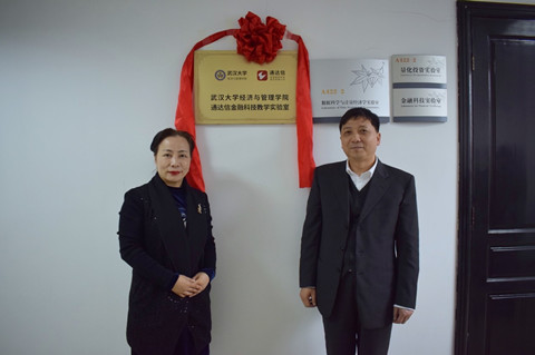 捐赠仪式前,姜星莉书记和黄山先生还共同为“通达信金融科技教学实验室”揭牌,并参观了实验室。双方还共建了武汉大学专业学位研究生实习实践基地。
