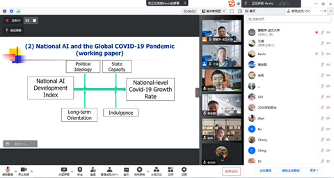 之后,周教授从制度理论视角,针对中国情境下经济、法律、文化层面分析了数字经济的潜在驱动因素和影响,并介绍了自己一系列的相关学术研究:从全球视角,探究不同国家的人工智能发展指数对于新冠疫情遏制的影响;从国家层面,探究来自不同法制和文化距离国家的公司如何利用中国的电子商务平台在中国市场销售自己的产品;从城市层面,探究不同城市的数字化水平对于员工福利的影响;从企业层面,探究企业数字化对于精准扶贫行为的作用等。
