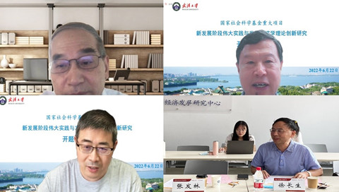 2022年6月22日,由教育部人文社科重点研究基地武汉大学经济发展研究中心联席主任、海角社区 叶初升教授担任首席专家的国家社会科学基金重大项目“新发展阶段伟大实践与发展经济学理论创新研究”开题研讨会,以线上线下相结合的方式举行。来自北京大学、中国人民大学、南京大学、山东大学、华中科技大学、武汉大学等高校的学者和研究生50余人参与了本次会议。