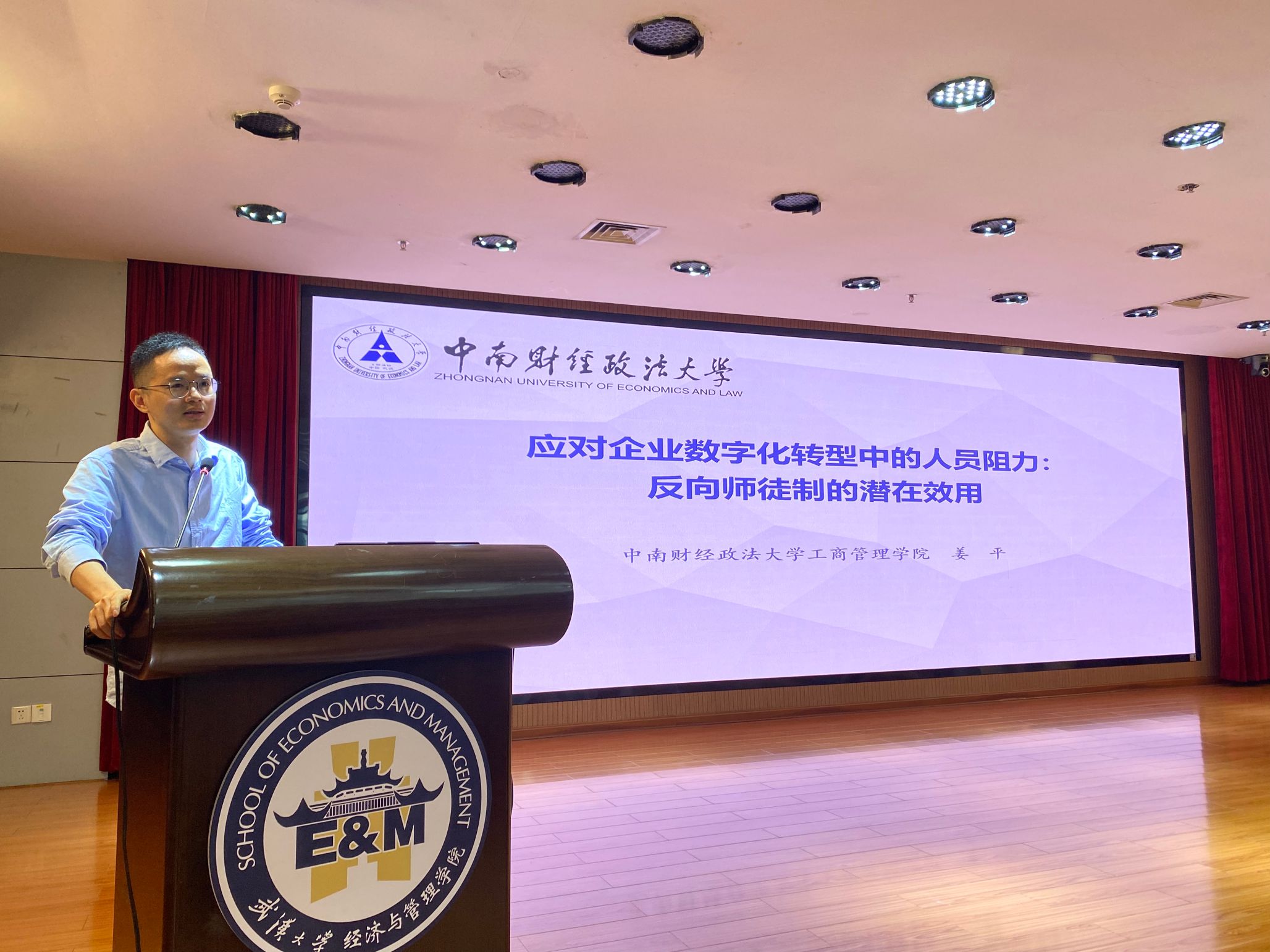 姜平副教授以“应对数字化转型的人员阻力:反向师徒制的潜在效用”为题,探讨了反向师徒制应用于企业数字化转型情境中的可行性。