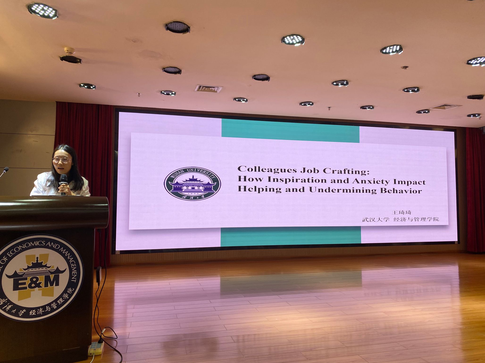 王琦琦老师以“工作重塑的双刃剑效应”为主题,从观察者视角探索同事工作重塑行为对员工的双重影响。