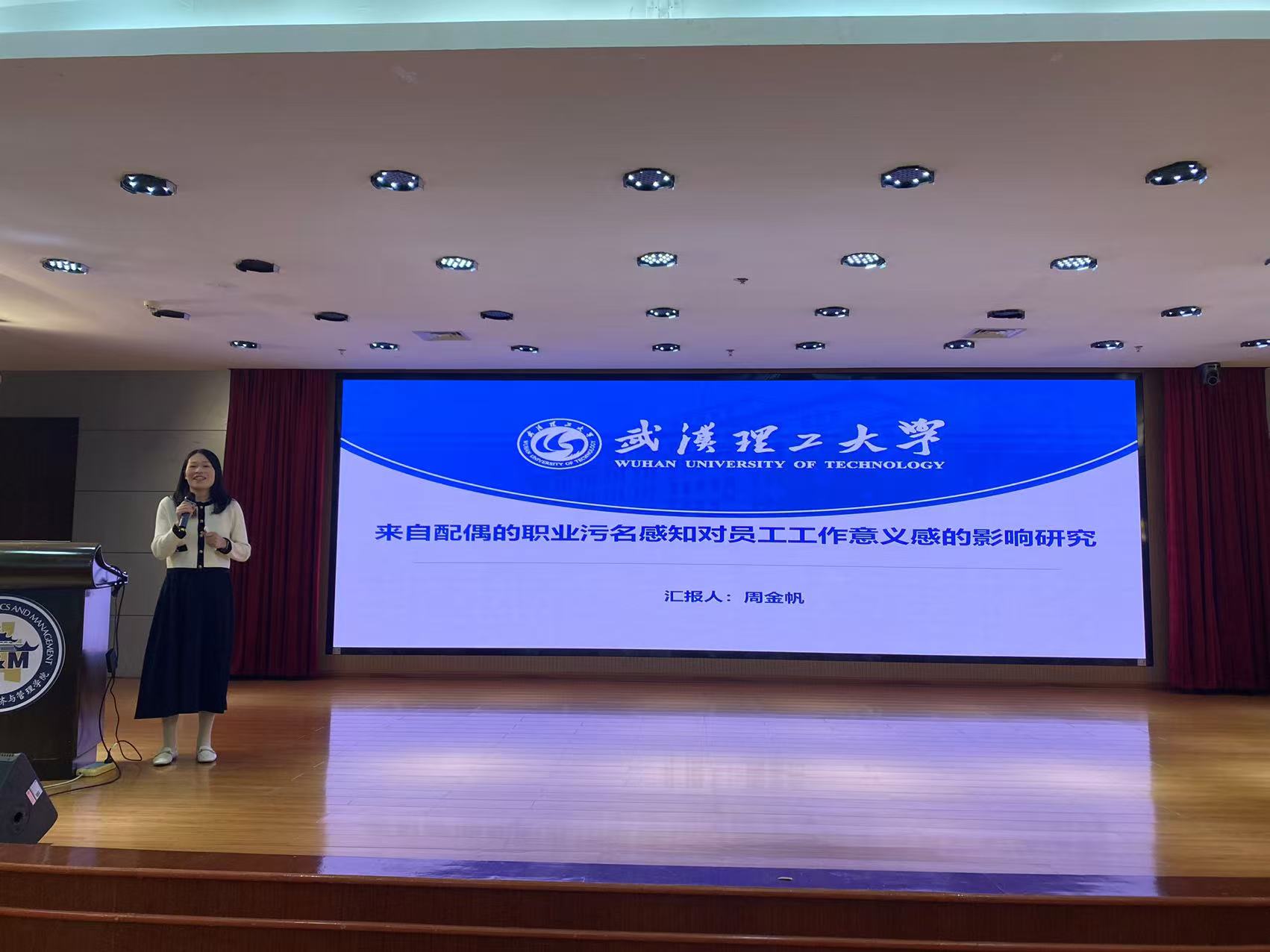 周金帆老师以“来自配偶的职业污名对员工工作意义感的影响:基于社会认同理论”为题,基于工作-家庭视角,分析配偶的职业污名与员工工作意义感之间的联系。