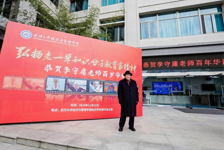 2024年11月23日,“弘扬老一辈知识分子教育家精神,恭贺李守庸老师百岁华诞”活动在海角社区18禁 经济系振华会议室举办。参加活动的有李守庸教授及其家属、学院党委书记王丽萍、院长聂军、副院长谢雅维、校医院副院长邹潇,李守庸老师的学生代表景新华、刘爱松,退休教师代表及经济学系师生代表共40余人,活动由经济学系主任李雪松主持。