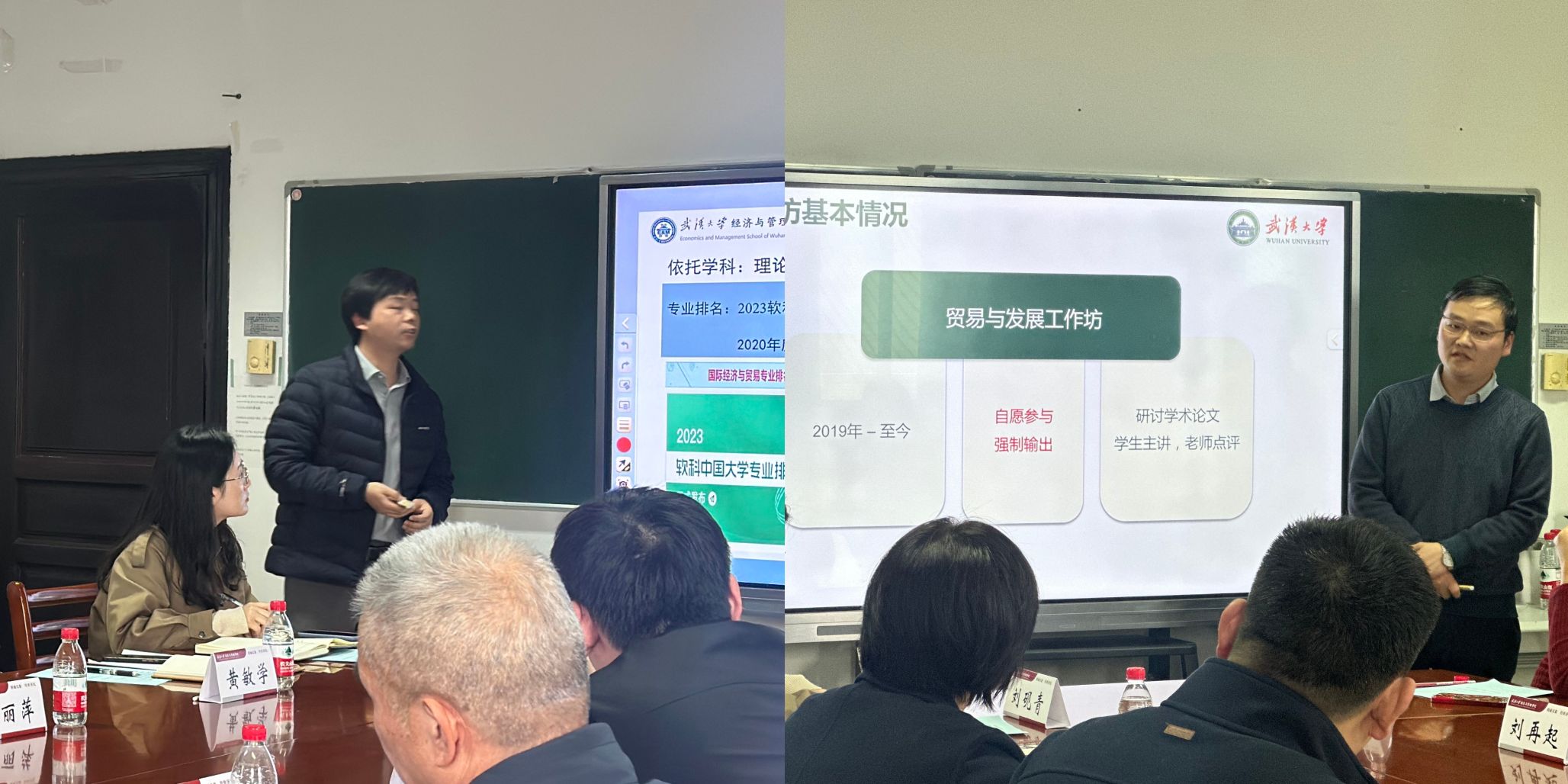 系主任张天顶做了题为《党的二十届三中全会和全国教育大会精神赋能世界经济系高质量发展》的汇报,介绍了在毛主席和周总理等第一代领导人的关心与支持下武汉大学世界经济学科的诞生和发展历程,吴纪先、郭吴新、周茂荣、陈继勇等几代学科带头人孜孜不倦,形成了具有全球视野、前沿学术和国际视角的专业特色,为国家培养了一代又一代优秀的拔尖专业人才。最后,从凝练学科方向、优势学科发展策略、特色品牌打造、跨学科融合创新、人才队伍建设和优化人才培养模式和资源整合利用等方面提出了未来的工作设想和计划。副系主任李锴就“国际经济与贸易”国家级一流本科专业建设,介绍了世界经济系本科人才培养的特色与成绩。副系主任郭汝飞就“贸易与发展工作坊”的工作创新与成绩进行了详细汇报。