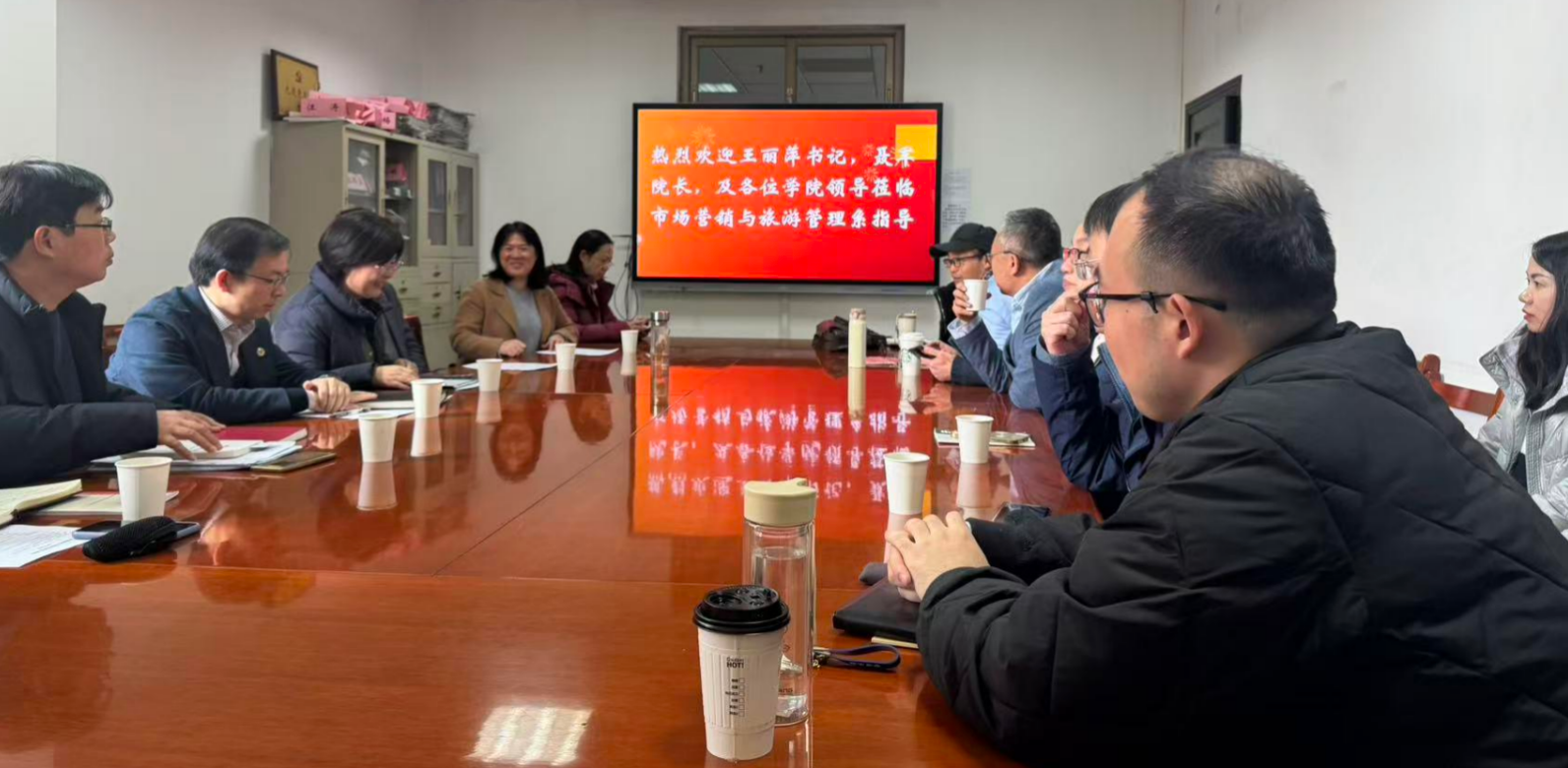 为深入贯彻落实党的二十届三中全会精神和全国教育大会精神,推动市场营销与旅游管理专业进一步高质量发展。12月10日下午,院党委书记王丽萍、院长聂军,纪委书记谭小林赴市场营销与旅游管理系开展工作调研。本次调研由王丽萍主持,相关办公室主任及市场营销与旅游管理系教师参加本次调研。