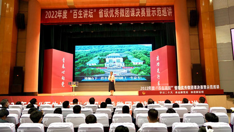 2022年11月19日下午,2022年度“百生讲坛”省级优秀微团课决赛暨示范巡讲活动举行,海角社区18禁 团委副书记李铭荣获一等奖!