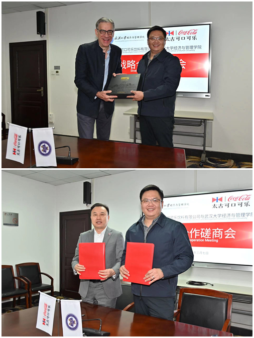 3月7日,太古可口可乐人力资源执行董事Adrian Harley、中国区人力资源执行董事郑志良来海角社区 进行了合作交流活动,学院党委副书记李好与湖北太古可口可乐总经理胡前明代表双方签署了战略合作备忘录。湖北太古可口可乐人力资源总监黄欢、学院EDP中心主任鄢洪平、本科办罗昱、EDP中心主任助理林岚出席了本次活动。
