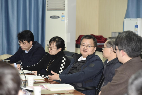 张平文在听取汇报过程中,就学科建设、专硕培养、师资建设等问题与参会人员进行了充分交流和深入探讨,并提出了指导意见。