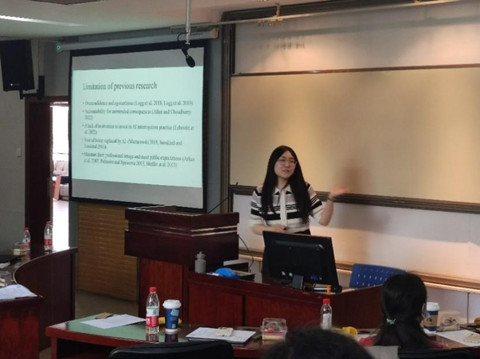 接着,来自武汉大学的薛莲老师报告了题为“Strategic Interactions with an Algorithm Assistant: The Power of Data and Mechanism”的最新研究,她探究个人接受基于人工智能(AI)算法的建议意愿,并将数据可用性和算法机制作为算法接受度的主要驱动因素,提出substitution effect和complementary effect两种效应。该研究结果提供了促进用户信任算法的条件的见解,并讨论了引入AI对社会福利的影响,这将对市场和经济产生重要影响。