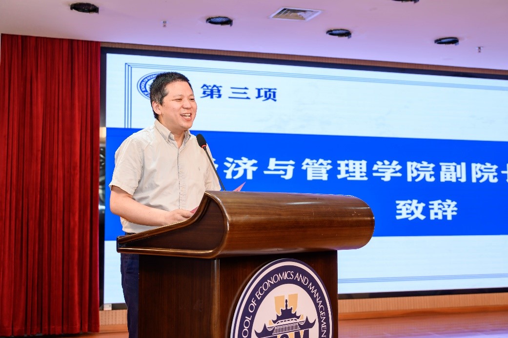 聂军在颁奖典礼的总结发言中,回忆了自己初入经管学科时的情景,表达了对甘教授和学院师生的美好祝愿。他强调了学术研究的重要性,鼓励学生们要有探索未知的勇气和决心,同时也要有服务社会的责任感和使命感。他的发言充满了对学生们的期望和信任,相信他们能够在未来的道路上取得更大的成就,为学院、为社会做出更大的贡献。