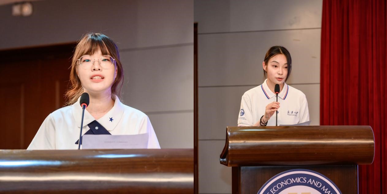 研究生代表沈湘和本科生代表彭芊韵在颁奖后的感言中表达了对学院和营销专业的深深感谢。她们的发言充满了对知识的渴望和对未来的憧憬,展现了武汉大学市场营销专业学子的风采。