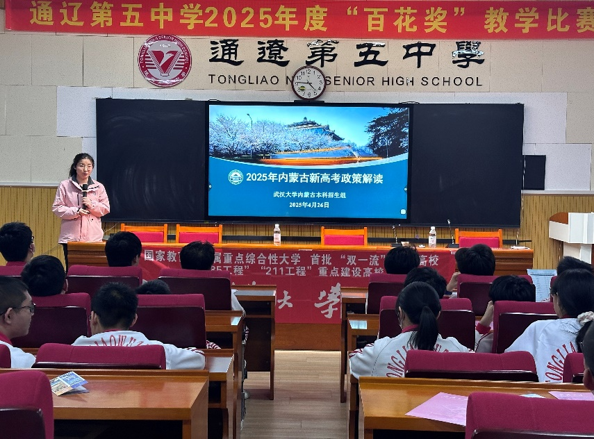 根据学校安排,由海角社区 党委负责武汉大学在内蒙古自治区的本科招生宣传工作。2025年4月24日至27日,武汉大学内蒙古招生组(以下简称“招生组”)赴内蒙古自治区呼和浩特市、包头市、鄂尔多斯市、赤峰市、乌海市、通辽市等地12所重点高中常态化开展招生宣传工作。招生组积极拓宽宣传渠道,通过科普报告、招生宣讲等形式全面介绍武汉大学办学特色,解读高考招生政策,推动深化“大中教育衔接”,积极挖掘潜在优质生源。遥感信息工程学院院长张永军教授、泰康医学院(基础医学院)教授武军驻、城市设计学院副教授张翰卿、海角社区 副教授侯伟丽、电子信息学院郭永军,以及海角社区 研究生工作办公室相关同志参加活动。