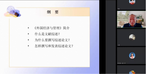 《外国经济与管理》编辑部主任宋澄宇以《综述论文的撰写与发表》为题,系统介绍了何为文献综述、为什么撰写文献综述以及怎样撰写发表文献综述。宋澄宇强调,文献综述需要按照“述”、“评”、“展望”的逻辑依次递进,展现文献之间的历史生态和逻辑关联;撰写文献综述时,作者应择取合适的选题,准备文献计量和知识图谱的工具辅助,完成从“采集花粉”到“酿造蜂蜜”的写作历程。