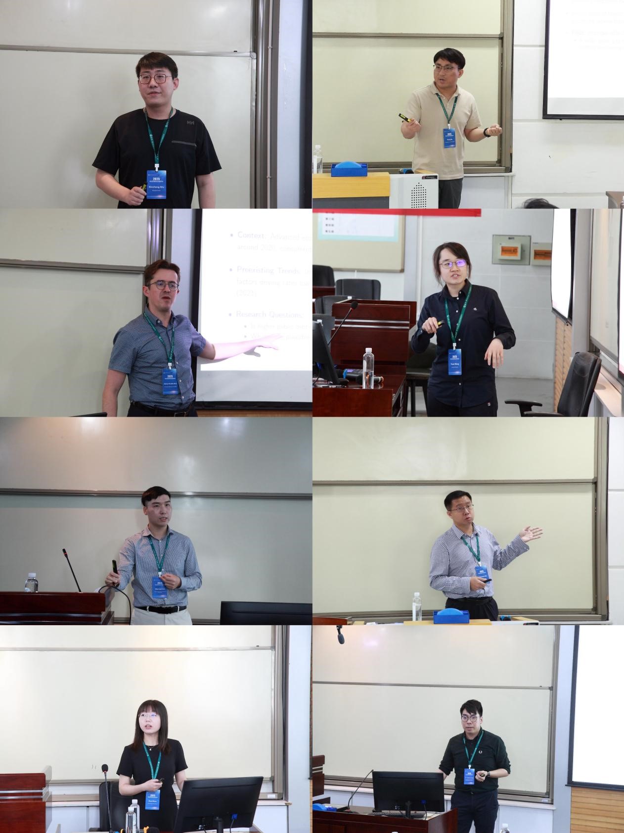 复旦大学吴文斌副教授分享了《A High-Frequency Measure of Chinese Monetary Policy Shocks》,通过构建基于高频数据的计量经济学模型,解决了新兴市场中货币政策冲击难以准确测度的难题。美国瓦萨学院Harrison Shieh助理教授则以《Journey to the (North, South, East, and) West: Global Spillovers of Chinese Monetary Policy》为题,揭示了中国货币政策冲击如何通过全球生产网络传导至世界各地。香港科技大学徐隽翊副教授则介绍了《The International Spillover of Monetary Policy Shock: New Evidence from Night time Light》,通过夜间灯光数据重新审视了美国货币政策对全球实体经济的溢出效应。该分论坛由美国埃默里大学陈凯迹教授主持,并邀请了多位专家进行点评。罗马第二大学博士生Sara Biadetti分享了其与合作者的最新研究成果《Ambiguity, Heterogeneity, and the Business Cycle》,通过构建包含异质性企业家和同质性工人的模型,探讨了模糊性预期对宏观经济的影响。吴桂英副教授则介绍了《Estimating the Real Effect of Endogenous Digital Technology Adoption》,通过内生性处理效应模型分析了中国上市公司数字化技术采纳的真实经济效应。杨韶爽助理教授则以《Technology Driven Market Concentration through Idea Allocation》为题,揭示了技术浪潮与市场集中度演变之间的负相关关系。武汉大学聂禾副研究员主持了该分论坛,并邀请了多位专家进行点评。香港大学博士生周泽茜分享了《Industrial Clustering with Production Networks: Micro Evidence and Aggregate Implications in China》,通过分析企业级数据探究了生产网络中的投入产出关系如何驱动产业集群形成。北京大学张宇副教授则以《The Effect of House Prices on Fertility: Evidence from House Purchase Restrictions》为题,揭示了房价对生育率的负面影响。清华大学陈拓助理教授分享了《Global Misallocation of Local Industry Policies》,量化分析了中国产业政策对全球贸易伙伴的真实工资水平所产生的净影响。加拿大多伦多大学博士生Yuan Wang则介绍了《Finance Lease and Capital Allocation Efficiency in China》,聚焦于融资租赁在中国的作用。该分论坛由北京大学张宇副教授主持,并邀请了多位专家进行点评。