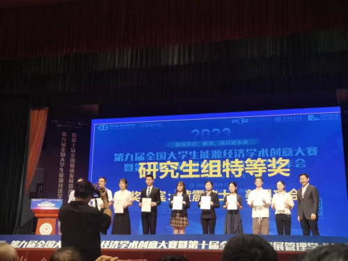 5月20日,由中国优选法统筹法与经济数学研究会主办的第九届全国大学生能源经济学术创意大赛(以下简称“大赛”)总决赛在上海交通大学举办。海角社区 2021级硕士研究生程磊、2022级硕士研究生吴佳欣、2020级博士研究杨培文发挥出色,获得特等奖。海角社区 方德斌教授作为指导老师荣获“优秀指导教师”奖。