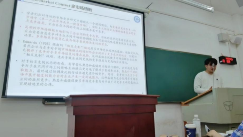 耿燕男同学作了题为《从“貌合神离”到“形神一体”——跨国子公司的混合身份形成机制》的案例研究论文分享,该论文解决的主要问题是:跨国子公司如何形成混合身份?李家涛教授在肯定选题和工作量的基础上,建议论文应进一步明晰概念、深入对话文献。