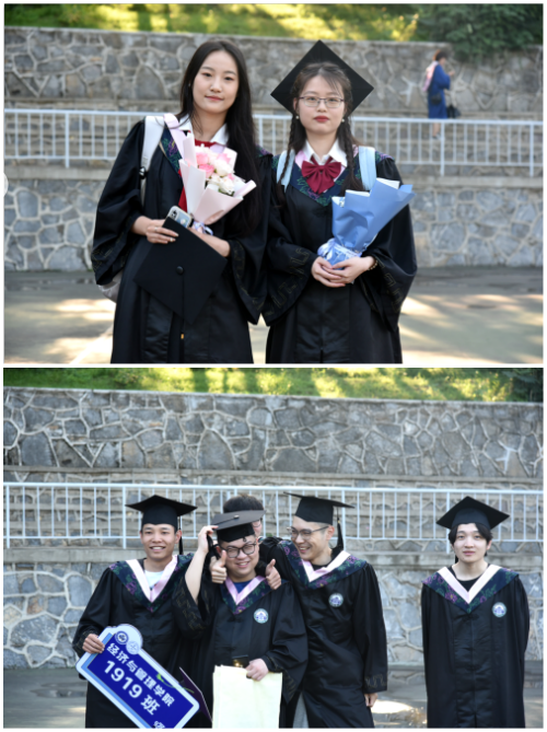大合影结束后,同学们兴致勃勃地各自与老师、同学合影留念,曾经的求学时光在一帧帧镜头前重现,同学们不由向学院老师衷心道谢,与同窗好友挥手告别,谢谢年少时的相互陪伴、道一声各自珍重,从此山高路远、顶峰相见。