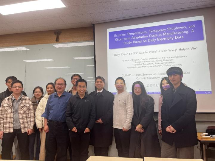 2025年11月27日至28日,学院师生代表团赴韩国开展学术交流,先后到访韩国加图立大学(Catholic University of Korea)和延世大学(Yonsei University),并分别参与两校联合举办的经济与金融学研讨会、微观经济学研讨会。此次活动搭建起校际高水平学术对话桥梁,不仅为师生创造了跨国学术交流契机,更推动了中韩高校在经济学领域的思想碰撞、经验互鉴与资源共享,为双方后续深化学术合作奠定了坚实基础。