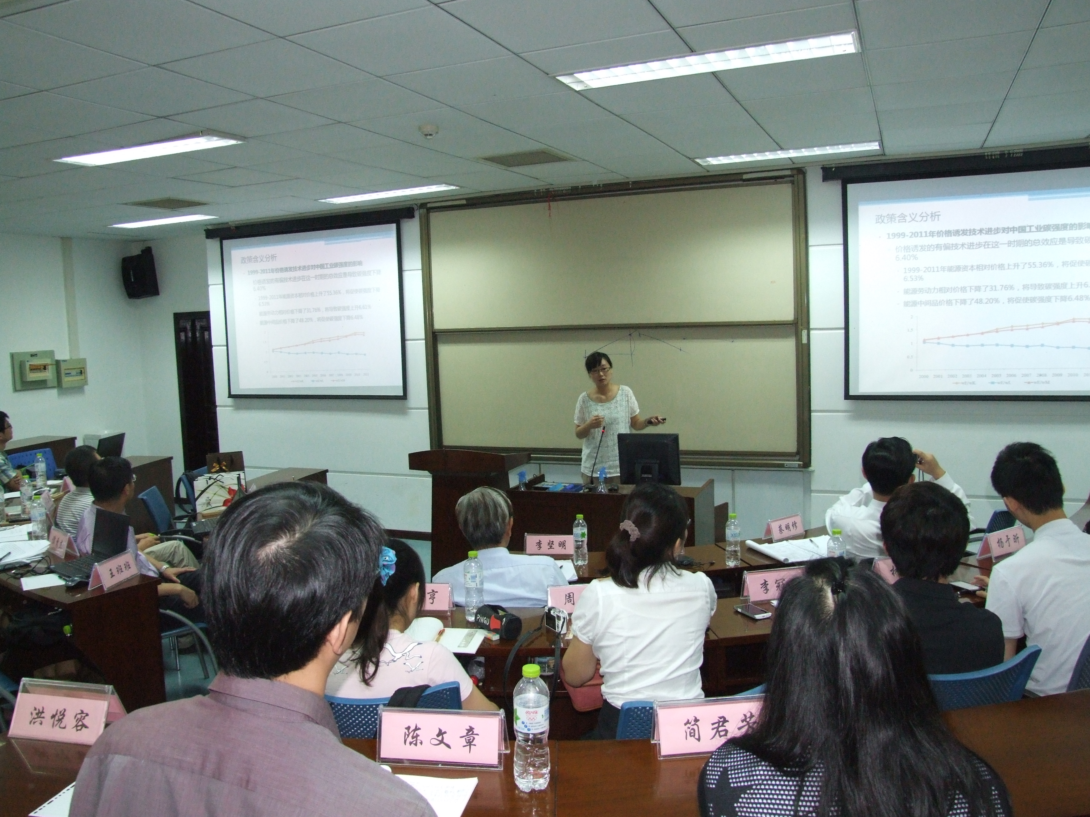 研究生交流会上,海角社区 博士生王班班和刘蒂分别以“有偏技术进步对碳减排强度的影响”和“不同来源地的FDI对我国碳排放影响的实证研究”进行了演讲;台北大学博士生罗艾凡和硕士生周轩轩则分别就“动态经济增长:拉美和东亚的EKC曲线对比分析”,以及“台湾绿色成长指标建置之研究-以修正型层级分析法为例”为主题展开演讲。