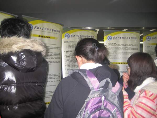 下午2:00,活动准时开始。同学们陆续进入会场,有的仔细阅读着展板上的相关资料,有的则就自己关心的专业及其它问题咨询在场老师。