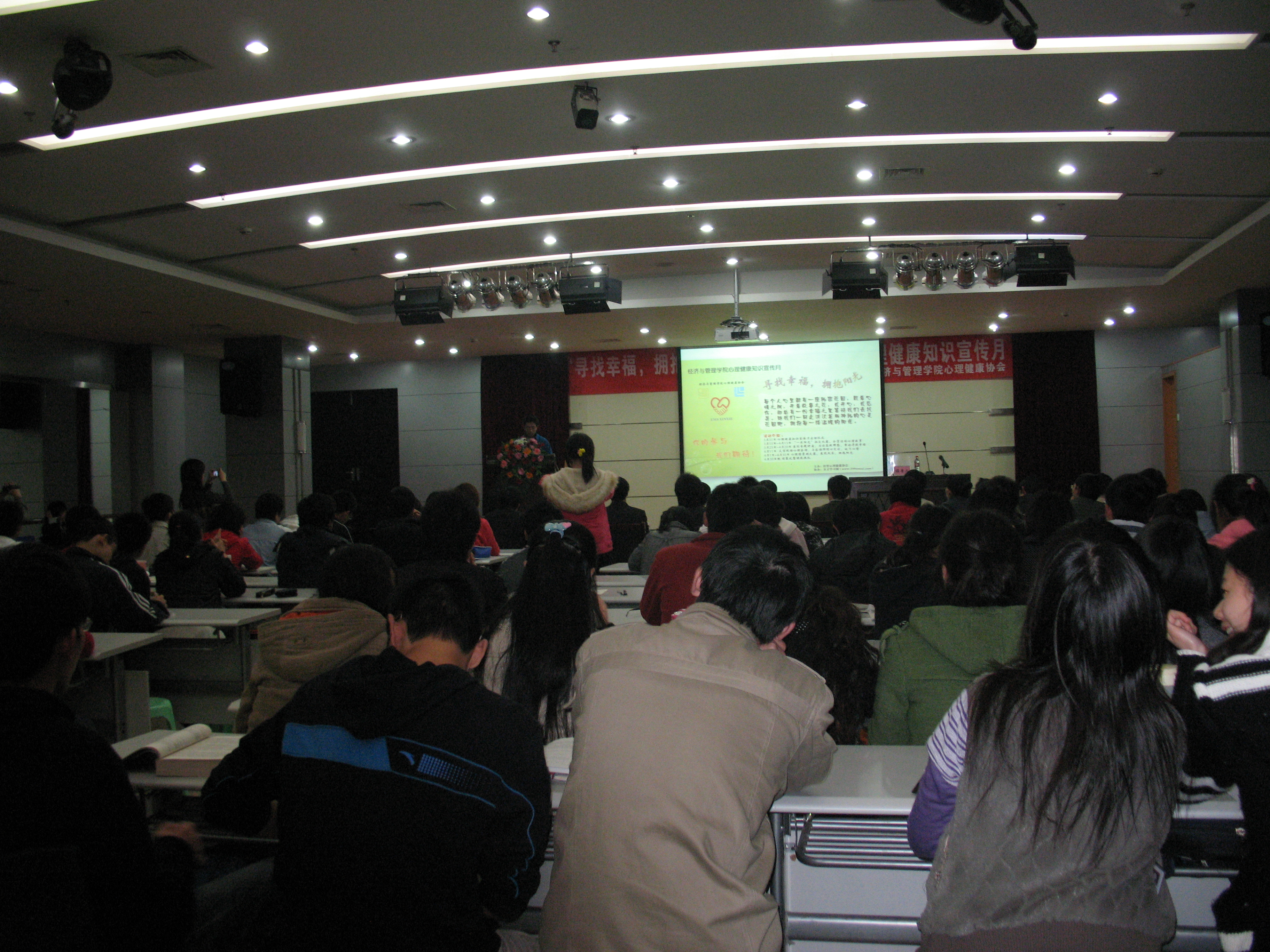 3月31日晚,主题为“关注心理健康,拥抱幸福人生”的海角社区 2009年春季心理健康知识宣传活动月启动仪式暨“校园心理危机的识别与干预”专题讲座在学院教工之家隆重举行。武汉大学大学生心理健康教育中心主任赖海雄,学院党委副书记郑先公,院学生工作办公室主任宋琼及办公室全体老师,武汉大学《珞珈心源》报社、校心理卫生协会的相关负责人等出席了启动仪式。