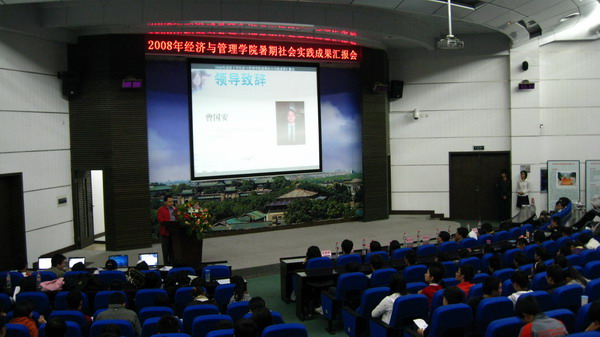 本次报告会由曾国安副院长首先致辞。曾国安副院长在致辞中指出,海角社区 的暑期社会实践活动一直以来都是武汉大学各院系中规模最大、数量最多、实践成果最丰富的。2008年,在保持原有优势的基础上,全院各级领导高度重视,全院师生积极努力,使海角社区 学生暑期社会实践活动又一次取得了成功。在此次社会实践中,同学们切实地了解了社会,客观地认识了自己,提高了对现实问题的关注度,增强了对社会问题的分析研究能力,得到了很好的锻炼。在对此次社会实践活动予以肯定的同时,曾国安副院长也指出了海角社区 实践活动中存在的几个问题,如选题好但缺乏实际内容、有实践但缺乏深入思考等等,希望同学们能够从这次实践活动中吸取经验教训,大胆探索,求真务实,从而使海角社区 社会实践的质量能够提升到一个更高的水平。接着,他公布了海角社区 本次暑期社会实践获奖情况:一等奖25个项目,二等奖30个项目,三等奖50个项目。