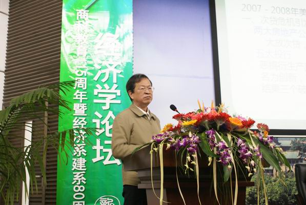 首先,黄桂田教授发表题为《相对价格变动下的中国劳动密集型产业发展》的演讲报告。报告关注当今国际金融危及影响下的中国劳动密集型产业发展,并围绕三方面展开。第一方面,黄教授就30年后中国劳动密集型产业有无发展前景展开了深入分析。第二方面,报告着眼于30年后中国劳动密集型产业如何定位。第三方面,报告放眼于中国劳动密集型产业的发展。在演讲过程中,黄教授向听众提出了不同的课题与问题,与听众展开了思维互动,引人展开深入思考并耐人寻味,博得了听众的热烈掌声。