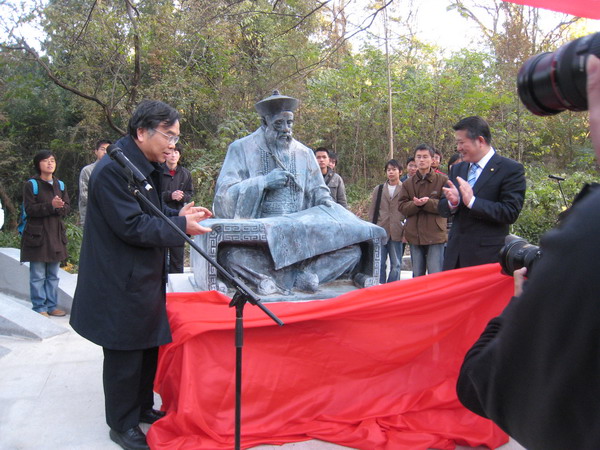 11月28日上午,作为“武汉大学商科教育115周年和经济学系建系80周年”庆祝活动之一的“张之洞先生塑像揭幕仪式”在我校侧船山畔举行。校长顾海良教授、79级部分校友、学校相关部门领导、海角社区 领导,以及部分教师、学生代表参加了本次仪式。仪式由常务副校长陈昭方主持。