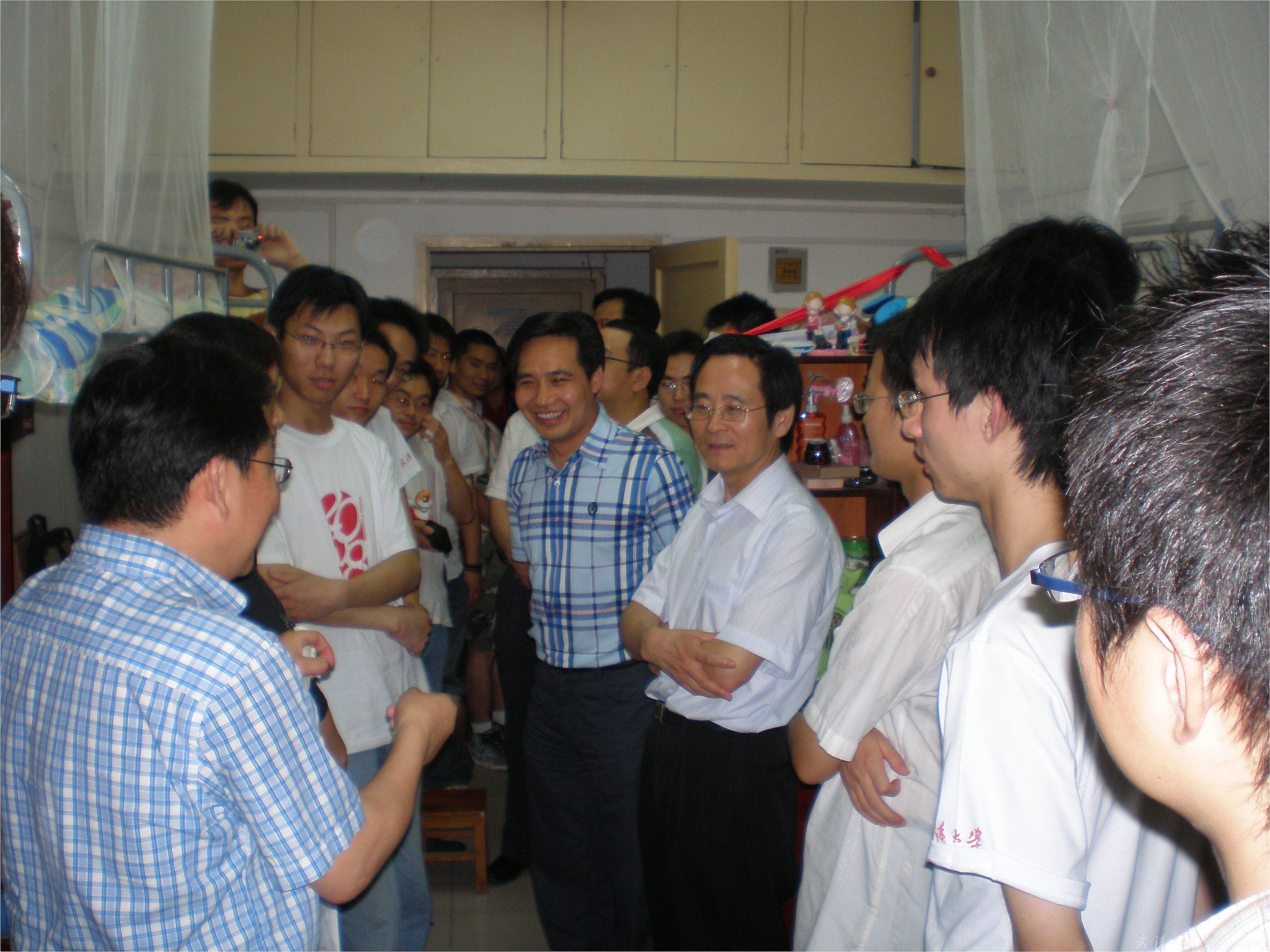 当日晚9时许,院长陈继勇教授,党委书记尤传明副教授、郑先公副书记、王永海副院长、李继龙副院长等领导,在学生工作办公室各位老师的陪同下,先后来到2004级本科生宿舍,梅园四舍、五舍和樱园四舍,看望即将毕业的本科生。面对即将毕业的学生,陈院长表示母校将永远是每个毕业生的家,希望各位毕业生能常回家看看;同时,也提醒毕业生在离校之前要注意自己的人身安全和财产安全。尤书记则更为简洁的表示了学院对各位毕业生的祝福,希望毕业生能“佳音早传,捷报频传”。