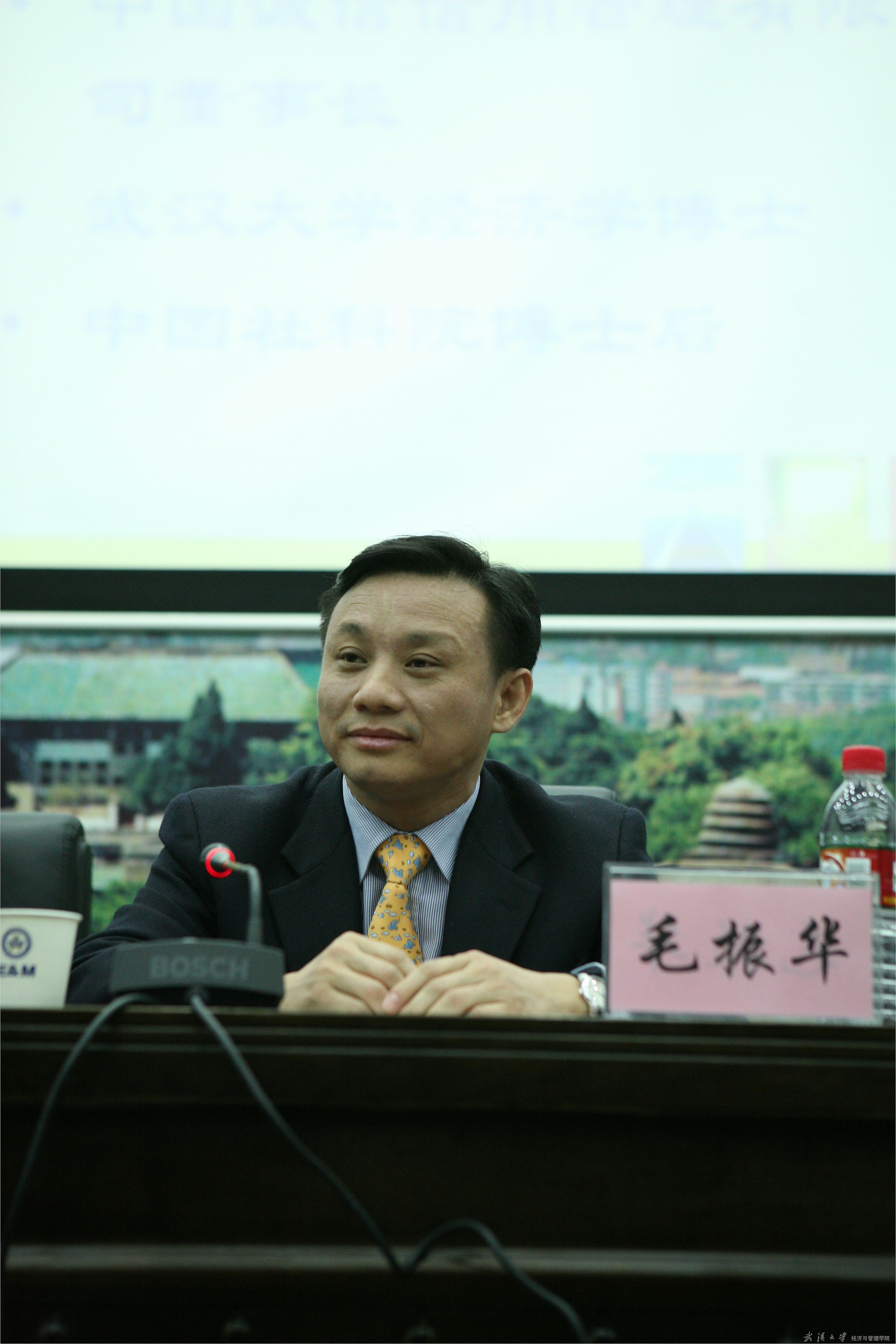 颁奖典礼结束后,毛振华教授为武大学子呈现了一场题为“宏观经济对策:防止通胀还是防止经济滑坡”的学术报告。毛教授是我校海角社区 经济学博士、中国社科院博士后,是我校优秀校友的代表,现担任中国人民大学教授、博士生导师、经济研究所所长、中诚信信用管理有限公司首席经济学家。他在报告中分析了中国当前宏观经济形势及发展趋势,针对我国GDP高速增长和CPI持续攀高的现实,提出目前宏观经济对策应防止经济滑坡,防止出现滞涨问题的论断;另一方面,他认为现在我国的通货膨胀并不是全面通胀,可以通过经济增长来抵消。整场讲座中毛教授旁征博引,妙语连珠,启发我们获得了一个理解中国经济问题的新视角。