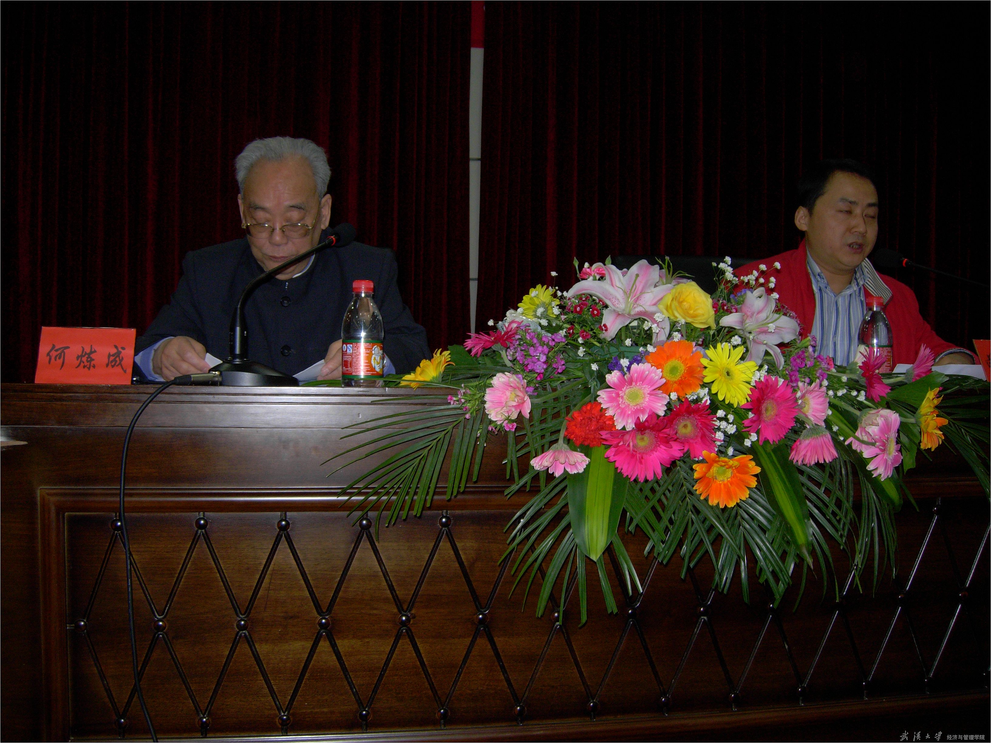 在报告会上,何炼成先生根据党的十七大文献,概括了中国特色社会主义经济学的基本体系,分别从生产论、流通论、分配论、消费论等方面阐述了中国特色社会主义经济学“特”在何处,回答了“中国经济学向何处去”的问题。何先生表示,他此次来汉是专程参加武汉大学2008年校友工作会议暨第五次校友代表大会的,自己能被评为第五届杰出校友感到非常激动;看到母校和学院的飞速发展与巨大变化,感觉非常惊喜和钦佩;今后他将继续关心、支持母校和学院的建设与发展。